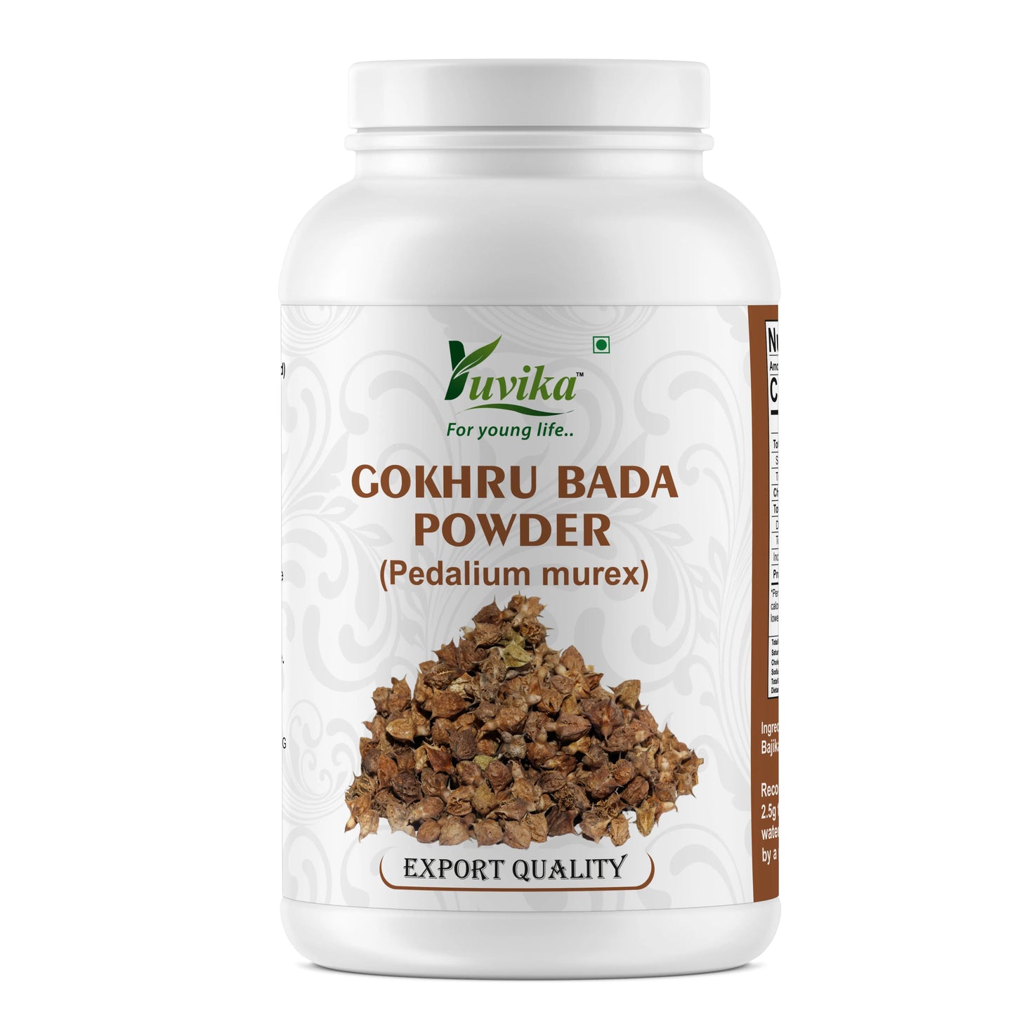 Experience the power of nature with Yuvika Gokhru Bada Powder! Made from Pedalium Murex, also known as Large Caltrops, this powder is packed with potent benefits. Boost your overall health and wellness with this natural supplement.